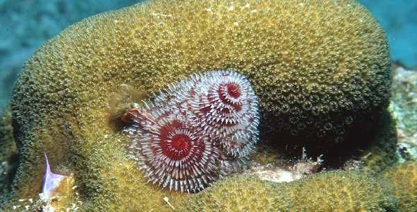 Christmastree-worm on a hard coral